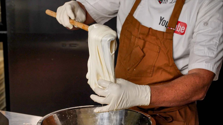 Vito shows us how to make fresh mozzarella from curd, at home from scratch.
